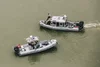 Hidalgo, TX - May 18, 2017 - U.S. Customs and Border Protection marine patrol agents detain a migrant (seated in the upper boat) who attempted to illegally enter into the United States from the Rio Grande River.